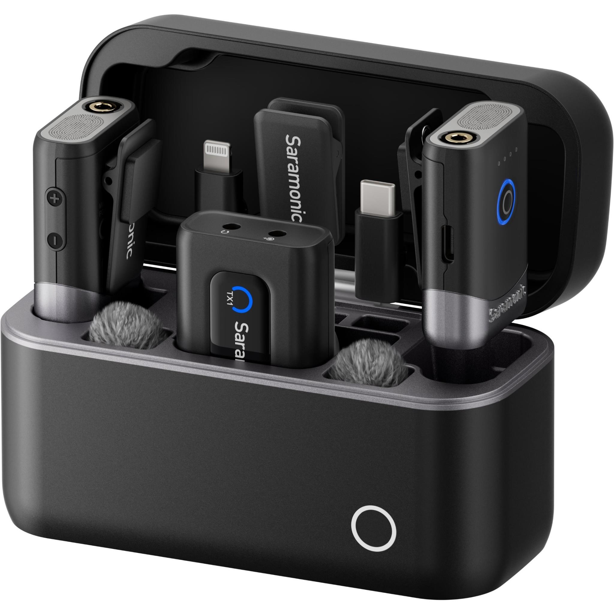 Saramonic Mix brings you a step closer to a pro recording experience discreet. reliable. and consistent. The transmitter's mic in port connects a wired lav mic for discreet recording. the pro chip resists interferences powerfully with AFH. and auto gain control for balanced sound levels. It is the ideal grab-and-go microphone for interviews. short video production. live streaming. and vlogging.