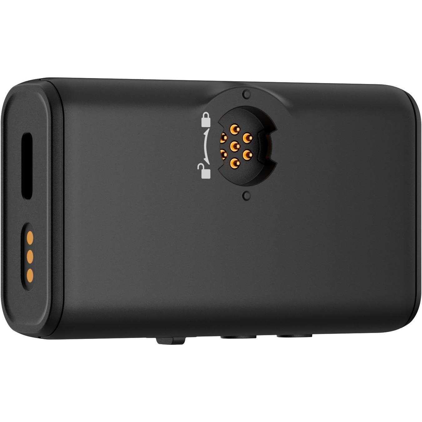 Mic in port connects wired lav mic for discreet recording