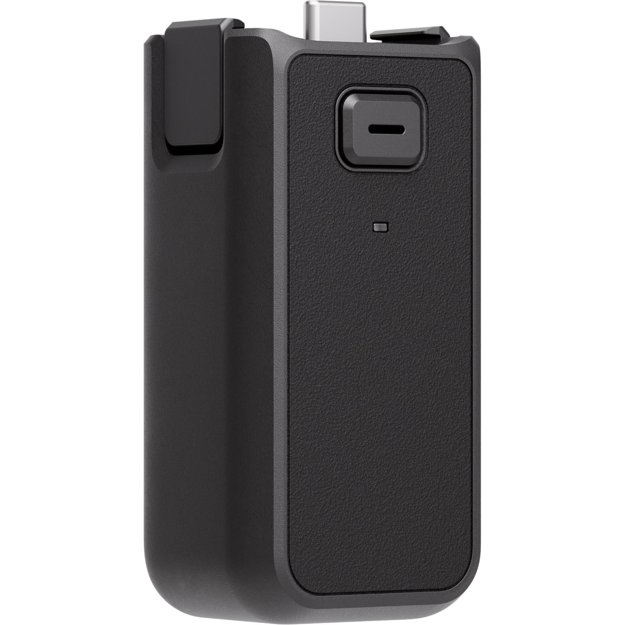 The Battery Handle has a built-in 950mAh battery. which can increase the operating time by approximately 62% when connected to Osmo Pocket 3. It supports hot swapping and comes with a USB-C port on the back that can be used to connect external audio devices. such as digital wired headphones. wired microphones. or wireless microphone receivers. The 1/4 thread at the bottom can connect accessories like tripods. delivering an enhanced user experience.