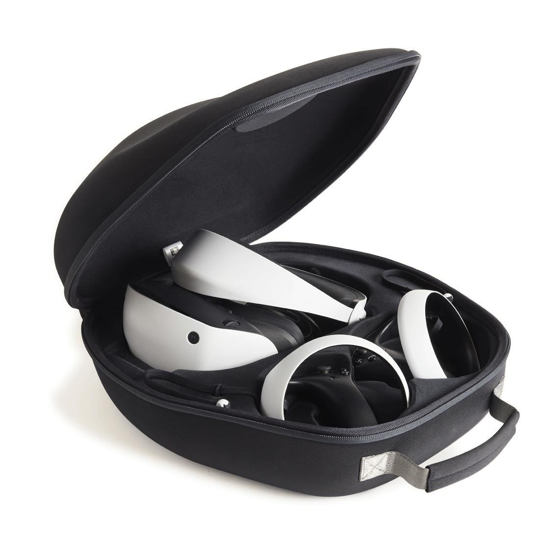 Store the PlayStation®VR2 Headset and PlayStation VR2 Sense Controllers in a durable shell with fabric exterior.