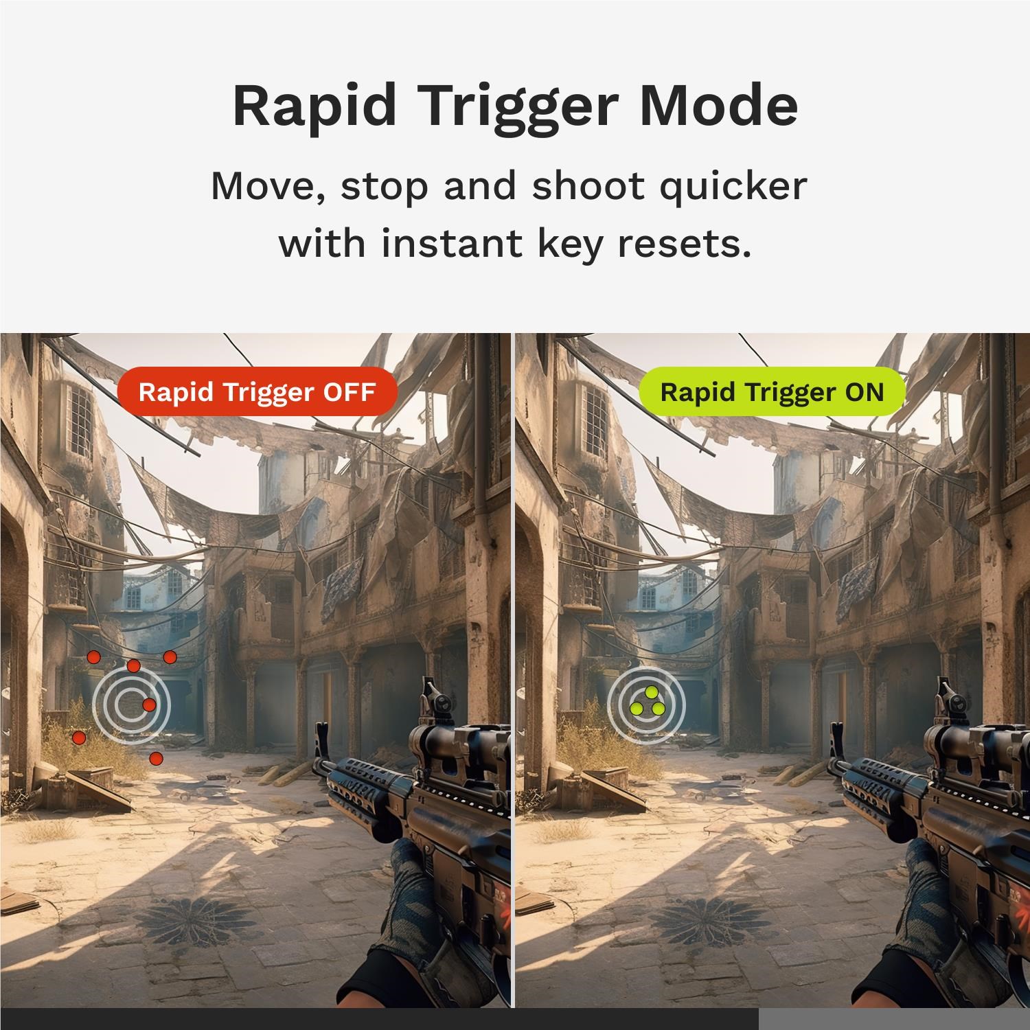 Hall Effect Gaming Performance: React faster with Rapid Trigger. 8.000 Hz Polling. Customizable Actuation. 4:1 Dynamic Keystroke. and more.