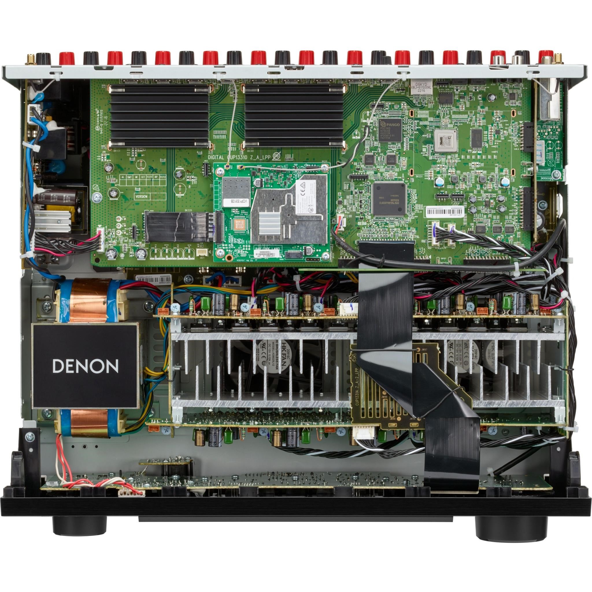 Powering 180W per channel. the Denon AVC-X3800H 9.4 channel 8K AV amplifier delivers an enveloping 3D audio experience and amazing picture quality thanks to Dolby Atmos®. DTS:X®. and the latest HDMI technology featuring HDR10+. Dolby Vision . and 8K video. Powered by HEOS® Built-in. access streaming music services and share with HEOS-enabled speakers in other rooms. With flexibility to set up the best speaker arrangement for your space and Audyssey MultEQ XT32 room correction technology to optimize the sound. we made this AV amplifier to meet the demands of home theatre enthusiasts. like you.