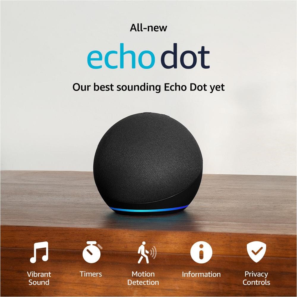 Echo Dot features improved speaker quality. delivering clearer vocals and deeper bass for rich vibrant sound. Just ask Alexa to play music. podcasts. and audiobooks and enjoy a dynamic audio experience anywhere in your home.