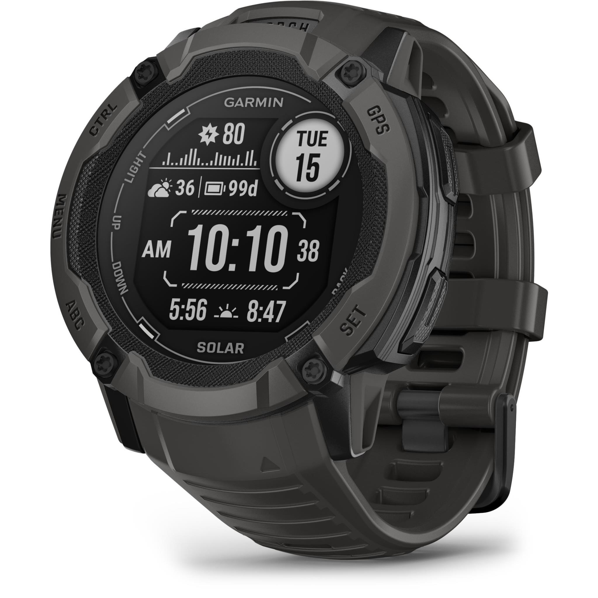 Whatever you do. own it with Instinct® 2X Solar. This bold. rugged GPS smartwatch is tough enough to keep up with you and unique enough to fit your style. Plus. solar charging gives you unlimited battery life in smartwatch mode when exposed to 3 hours of direct sunlight (50.000 lux) per day. When the sun sets. use the built-in LED flashlight to keep going and stay visible. Do more of what you love with preloaded activity profiles for running. biking. swimming. strength training and more. Count on multi-band GNSS support to provide more accurate positioning in challenging environments. Check your wrist to stay connected with smart notifications. Garmin Pay contactless payments and Connect IQ app integration (when paired with your compatible smartphone). Understand your body better with all-day health monitoring for energy levels. stress. sleep. Pulse Ox. heart rate and more (this is not a medical device. and data presented is intended to be a close estimation of metrics tracked. Pulse Ox not available in all countries).