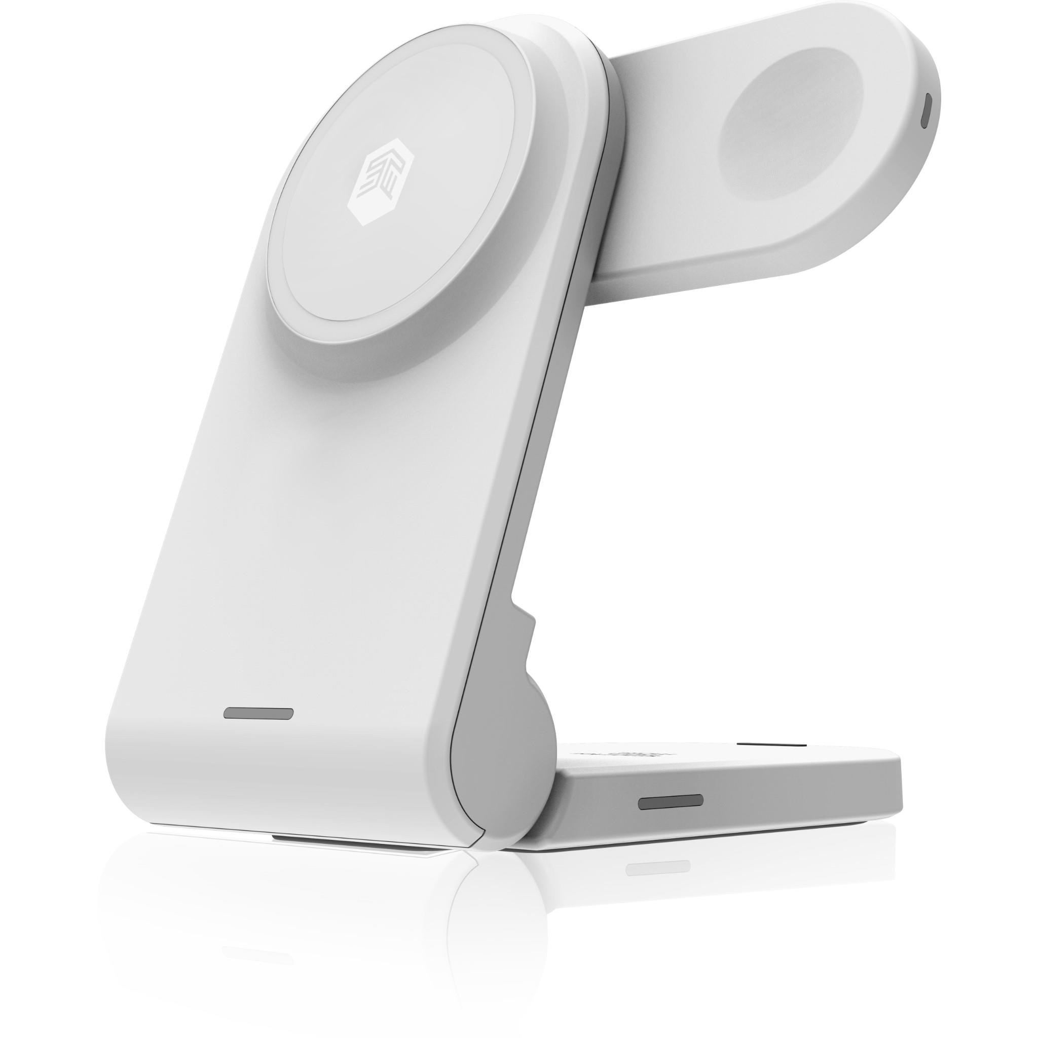 The MAG version of the popular ChargeTree is a game changer. The slim. vertical format takes up minimal space on a desk or nightstand while charging three devices at once with a single cord. and the pop-out watch platform even enables nightstand mode. Folds compactly to travel from home to office to hotel and beyond. and still works as a charging platform even when collapsed.