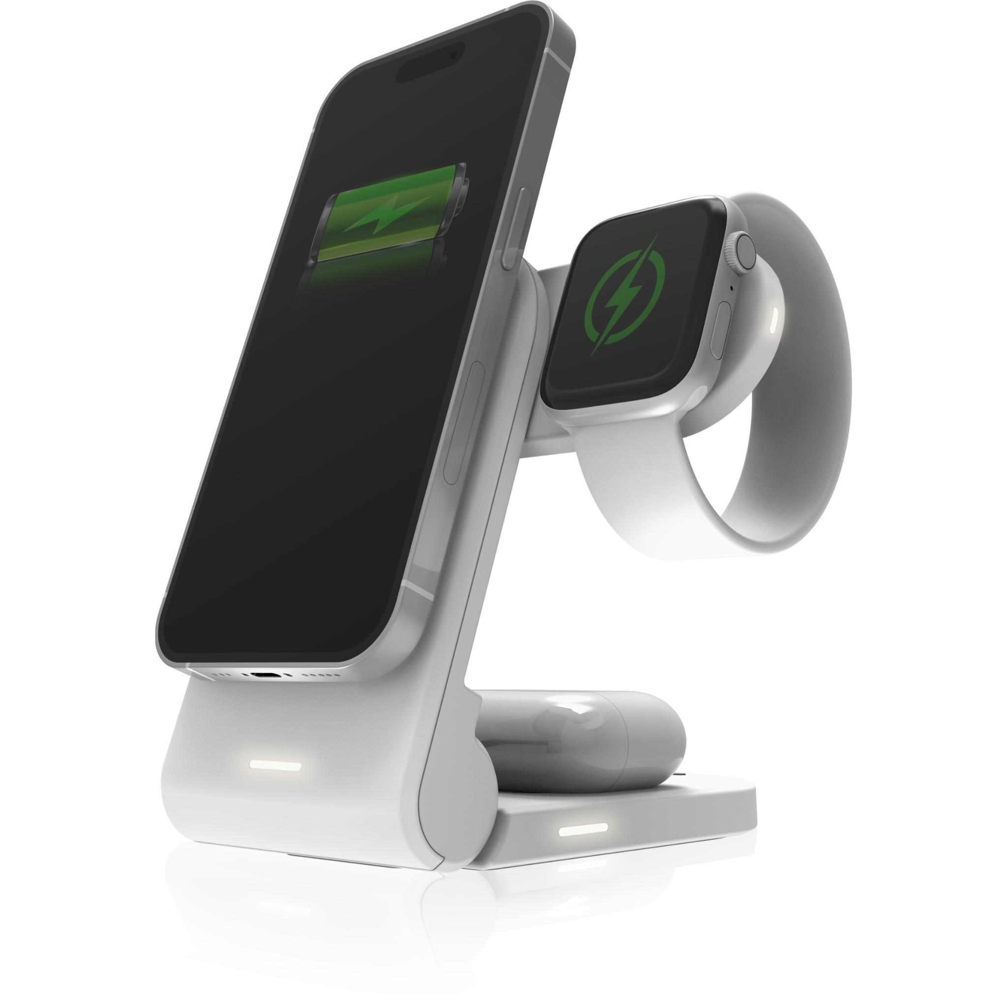 Charge 3 devices at once. when staying put or...when you go. ChargeTree MAG charges your wireless enabled iPhone. AirPods. and Apple Watch all in a slim. vertical charger that folds up compactly when it s time for you to get going.
