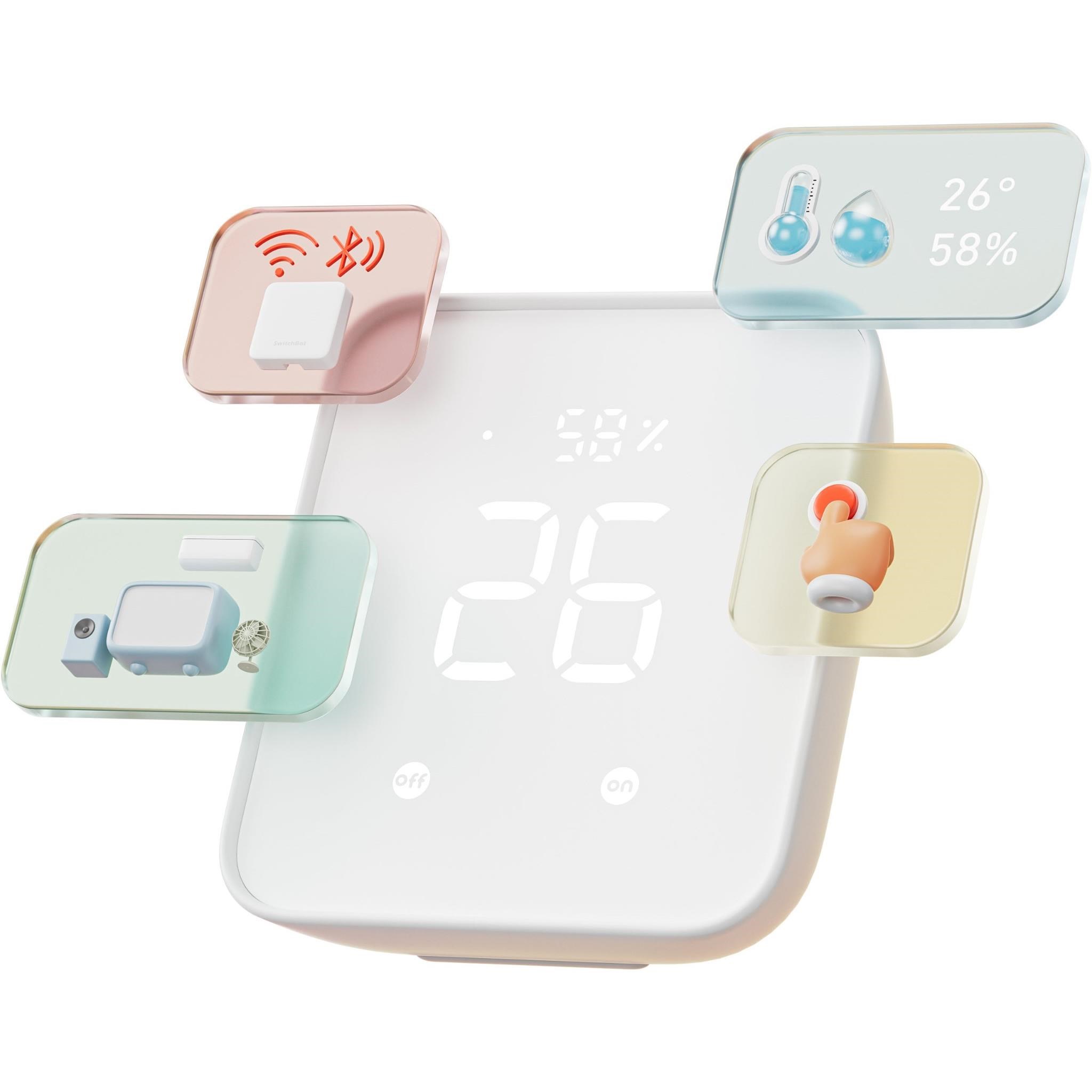 The SwitchBot Hub 2 features a built-in industrial Swiss-made chip (accuracy up to ±1.8% RH/±0.36°F) in its cable. Additionally. the panel comes equipped with a light sensor. which enables the screen brightness to adapt to the environment seamlessly.