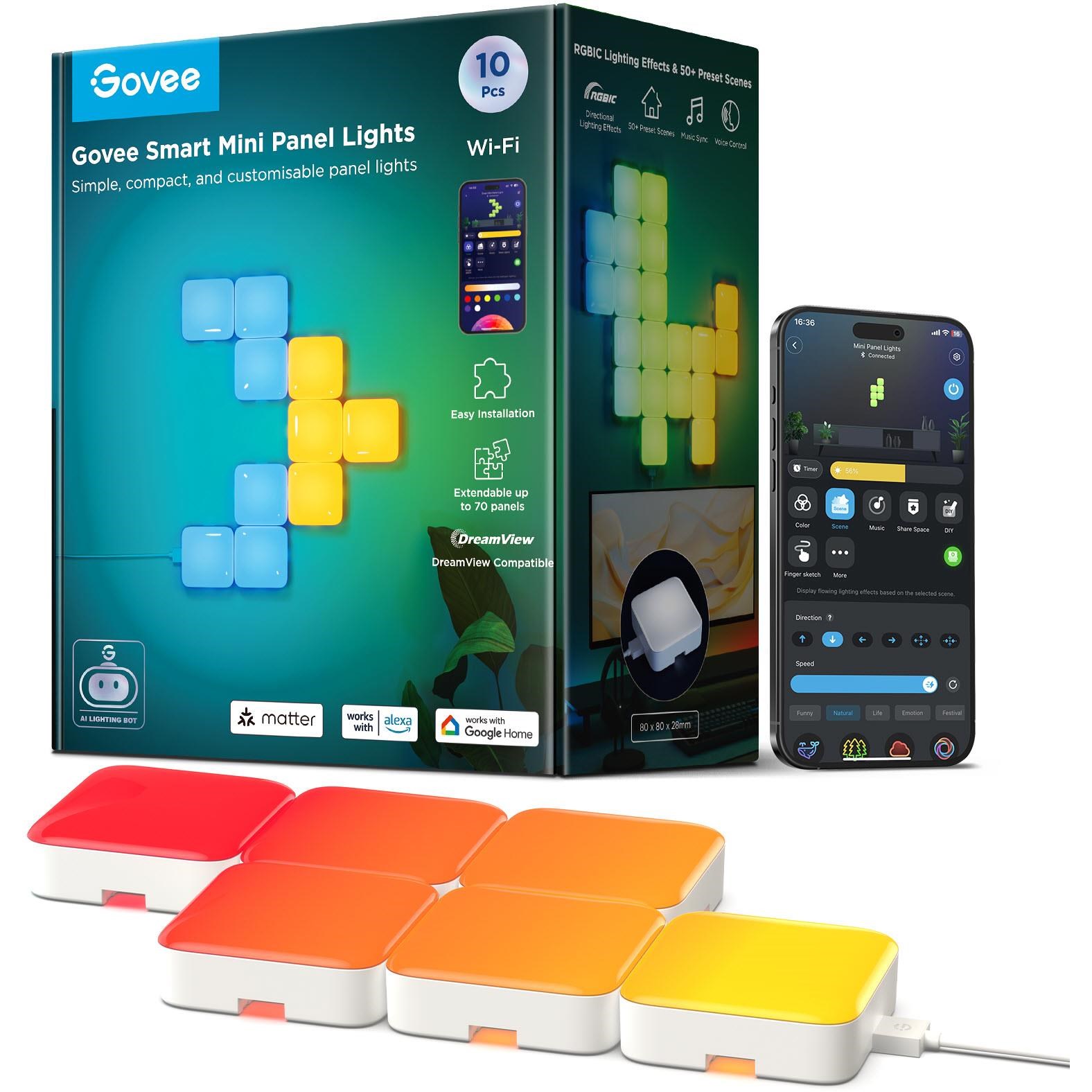 Expand your Govee Mini Panel Light layout with this 6-piece RGBIC add-on set. Compatible with the original 10-piece kit. it unlocks even more creative designs. dynamic lighting effects. and immersive room ambience.